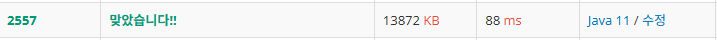 정답일 경우 맞았습니다!! 라는 문구가 뜨며 성공이다.