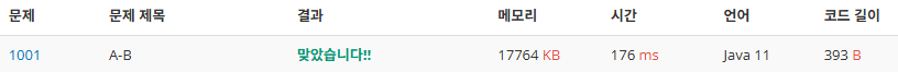 문제 : 두 정수 A와 B를 입력받은 다음, A-B를 출력하는 프로그램을 작성하시오.
